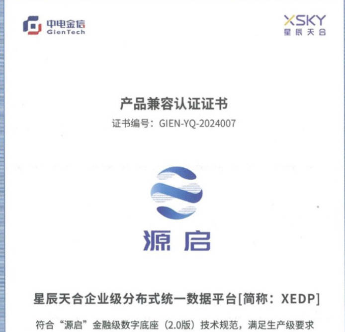 服務(wù)于金融新核心系統(tǒng) XSKY星辰天合與中電金信完成產(chǎn)品兼容認(rèn)證
